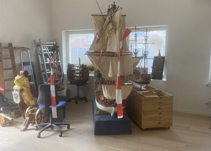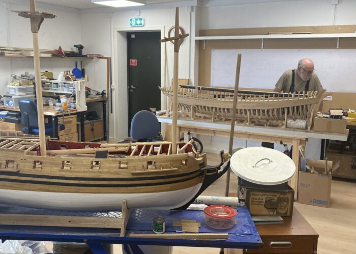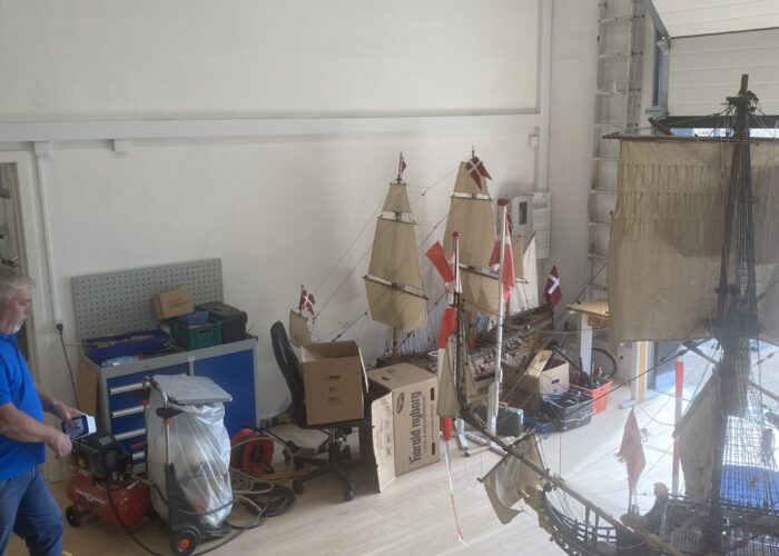 En model af en 1600 – tals fregat påbegyndes. Modellen bliver gennemskåret på langs, således at man kan se det indvendige såsom kaptajnens kahyt, kabyssen, ankerkædekassen, proviantrum mm.